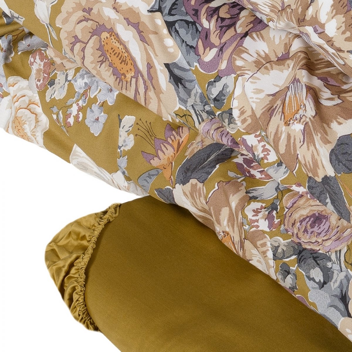 Il sacco copripiumino e le federe, arricchite da quattro volani, sono stampati da entrambi i lati. Il lenzuolo con angoli è in tinta unita. Tutto il completo è in percalle di puro cotone.