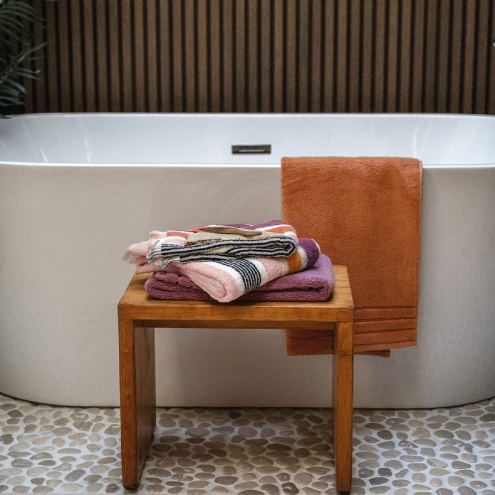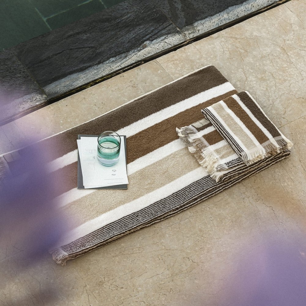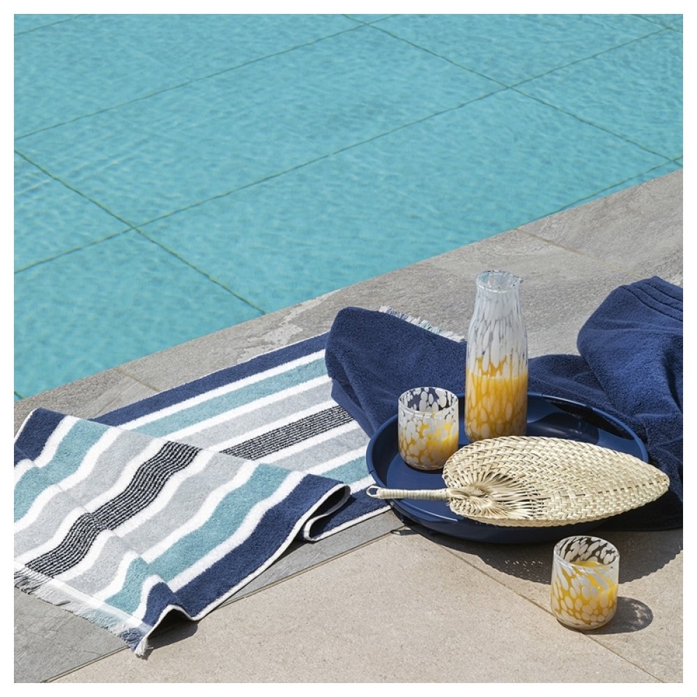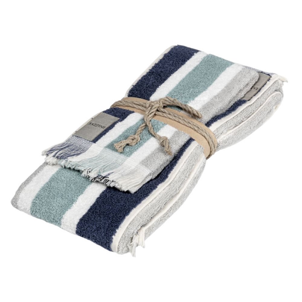 Realizzata in cotone di qualità tinto in filo, la spugna Gradazioni si aricchisce di nuovi colori per accostarsi alle differenti stagioni con il suo sempre attuale motivo a righe.