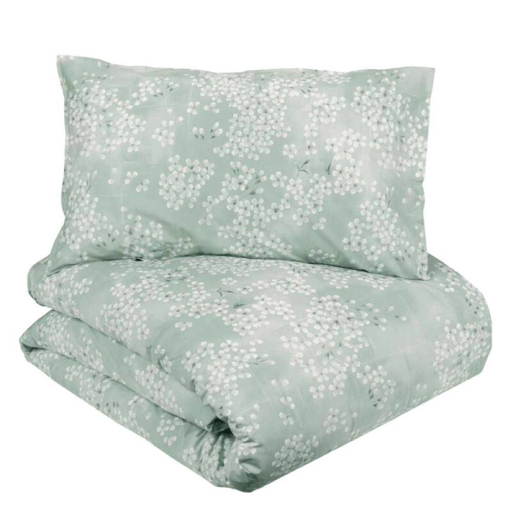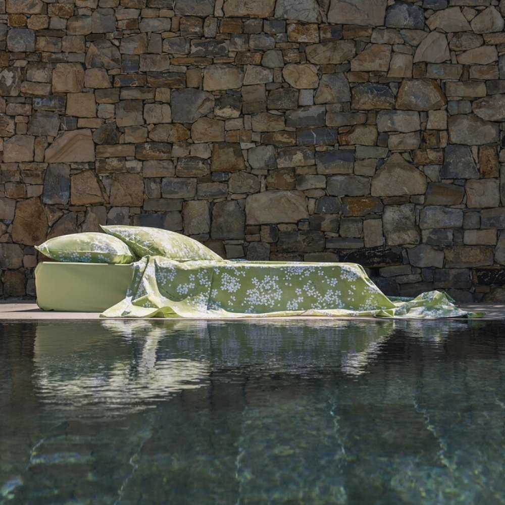 L'elegante disegno che caratterizza la collezione KIMONO riveste il copripiumino creando una aiuola giapponese da cui l'occhio è magicamente attratto.