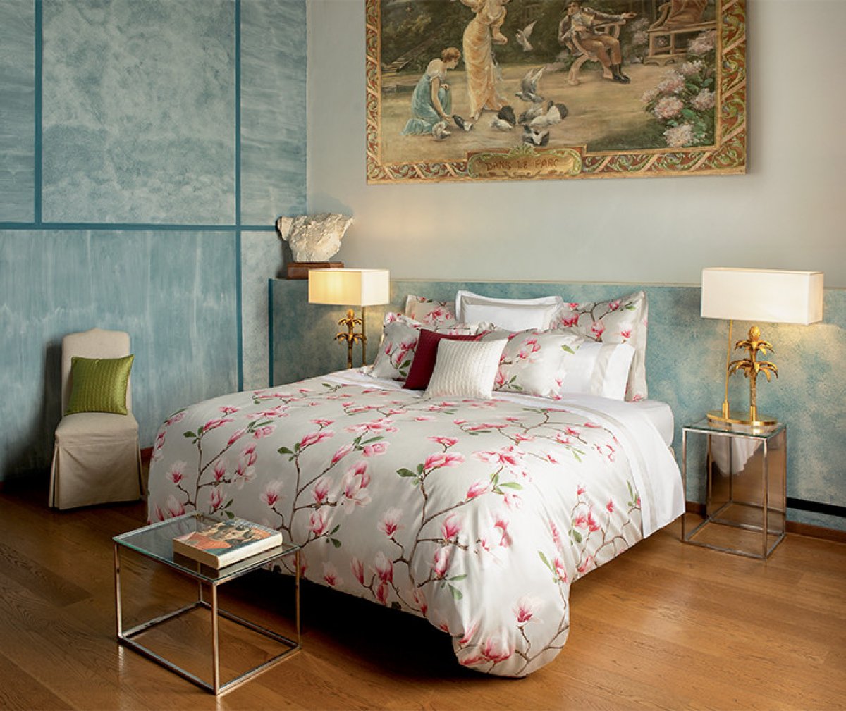 Il fondo colorato che mette in risalto il tralcio della magnolia e la particolare nuance dei rosa che caratterizza questi fiori, rendono la collezione Capri molto realistica, sembra di toccare questi petali morbidi e eleganti.