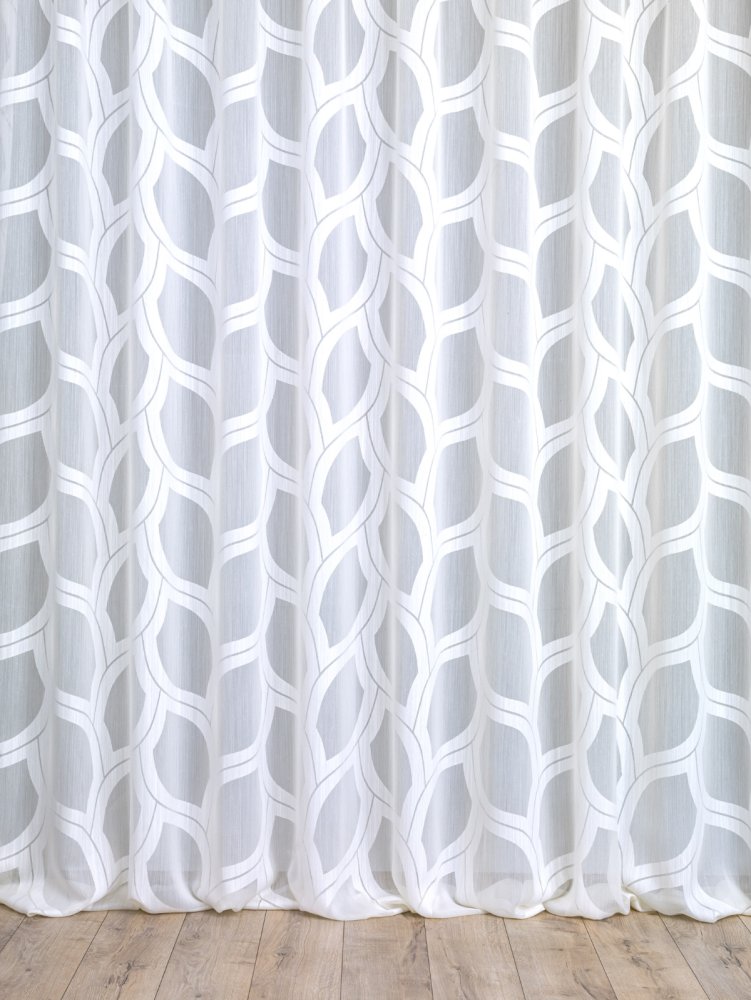 Moderno tessuto Devorè; termine che deriva dal francese e letteralmente significa “divorato”. Si tratta di una particolare tecnica di lavorazione tessile consistente nell’eliminare (“divorare”) una parte di tessuto. Il tessuto di base è composto da almeno due fibre diverse: